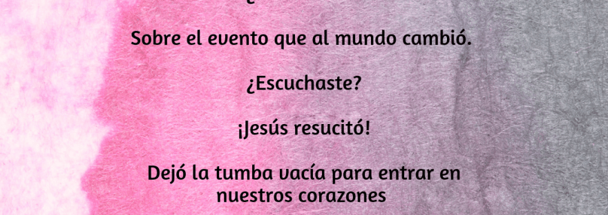 ¿Escuchaste? ¡Lo qué pasó! ¿Escuchaste? ¡Qué el velo se rasgó! ¿Escuchaste? Lo que en la tumba ocurrió. ¿Escuchaste? ¡Algo que nadie se imaginó! ¿Escuchaste? Sobre el evento que al mundo cambió. ¿Escuchaste? ¡Jesús resucitó! Dejó la tumba vacía para entrar en nuestros corazones Noticia que debemos compartir con las naciones La obra de amor más… Continue reading ¿Escuchaste?