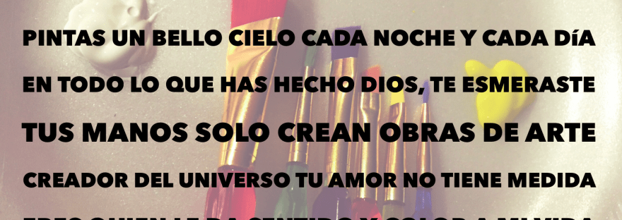 El amor de Dios por nosotros y toda su creación son obras de arte, dignas de admiración. Eres el verso de la poesía de mi vida De mi canto tu eres la melodía El autor principal de mi historia El protagonista de esta obra La naturaleza te exalta con una hermosa sinfonía Pintas un bello cielo cada… Continue reading Eres Arte